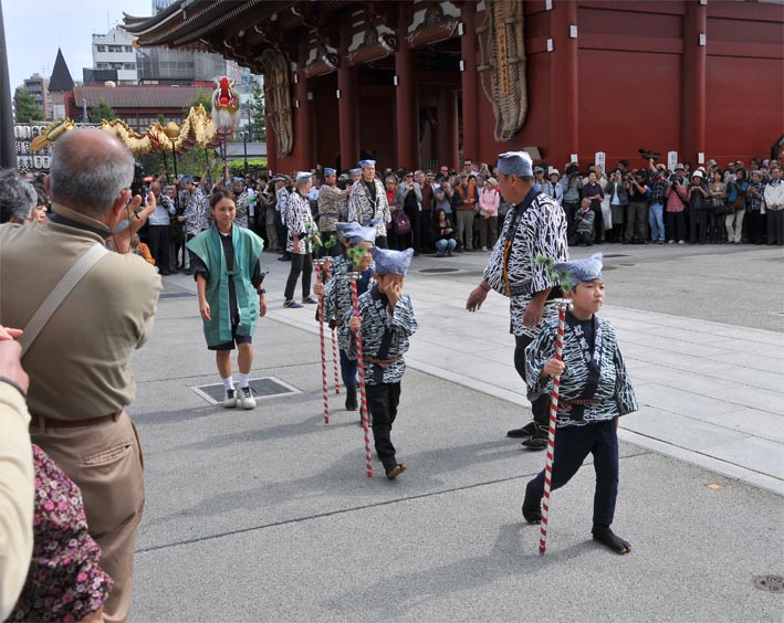 こちらも小学生でしょうか、金龍を先導します。 そのあとは、住職さんや世話役の人たちです。 Photo 07